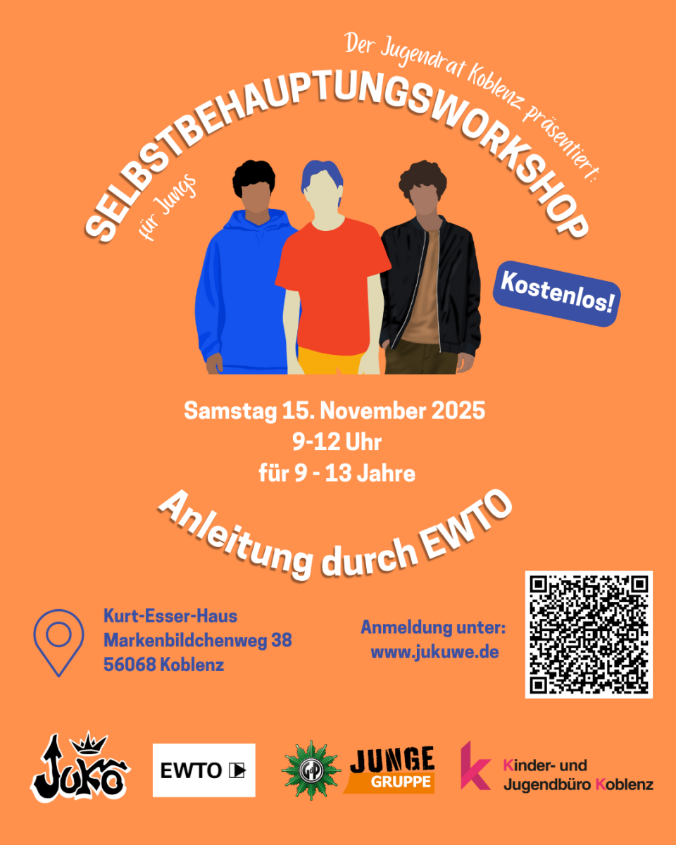 In unserem Selbstbehauptungsworkshop stärken Jungs ihr Selbstbewusstsein, lernen mit herausfordernden Situationen umzugehen und entwickeln Strategien, um sich in Alltagssituationen sicher und klar zu verteidigen. Die Veranstaltung findet in Kooperation mit der EWTO und der Jungen Gruppe der Gewerkschaft der Polizei statt.